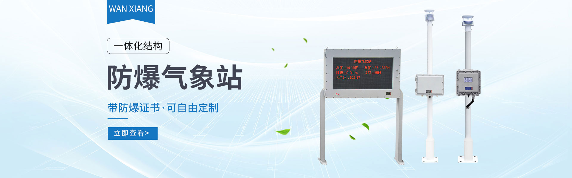 山東萬象環境科技有限公司官網主要產品有防爆氣象站,校園氣象站,農業氣象站,負氧離子監測站,超聲波氣象站,歡迎咨詢13276361891!